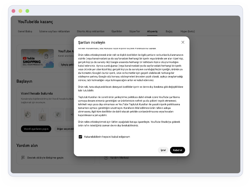 Buradaki formu doldurarak Voxvil mağazanızı YouTube kanalınıza bağlamak için başvuru yap.